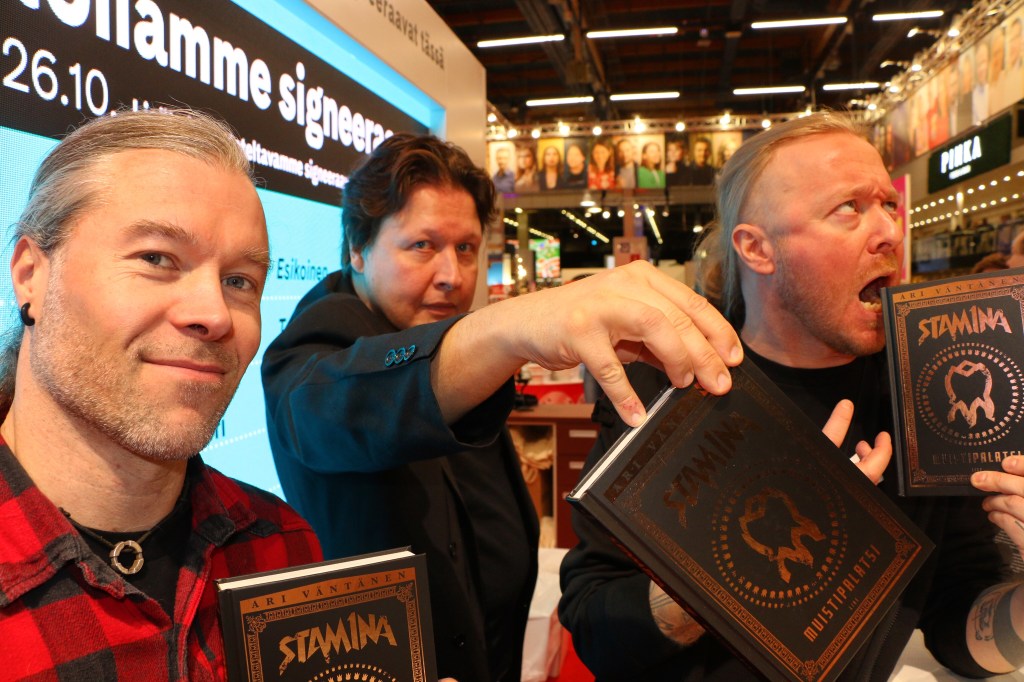 Olemme torstaina 26.10. Stam1nan Hyrden ja Pexin kanssa Helsingin kirjamessuilla juttelemassa Muistipalatsi-kirjasta. Sen jälkeen signeeraamme opuksia. Tule moikkaamaan! (Kuva: Jouni Hirn)