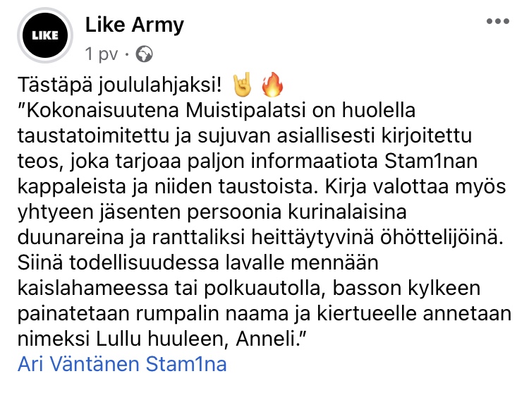 Metalliluola-sivuston Pete Alander kirjoitti arvostelun Stam1na-kirjastani.